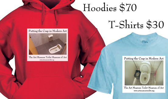 Be Fashionable with our selection of distinctive clothes. Order a shirt and you can even choose the museum toilet of your choice! Pick your color and size and we will do the rest! Hoodies are $70 and T-Shirts are $30. For orders please email